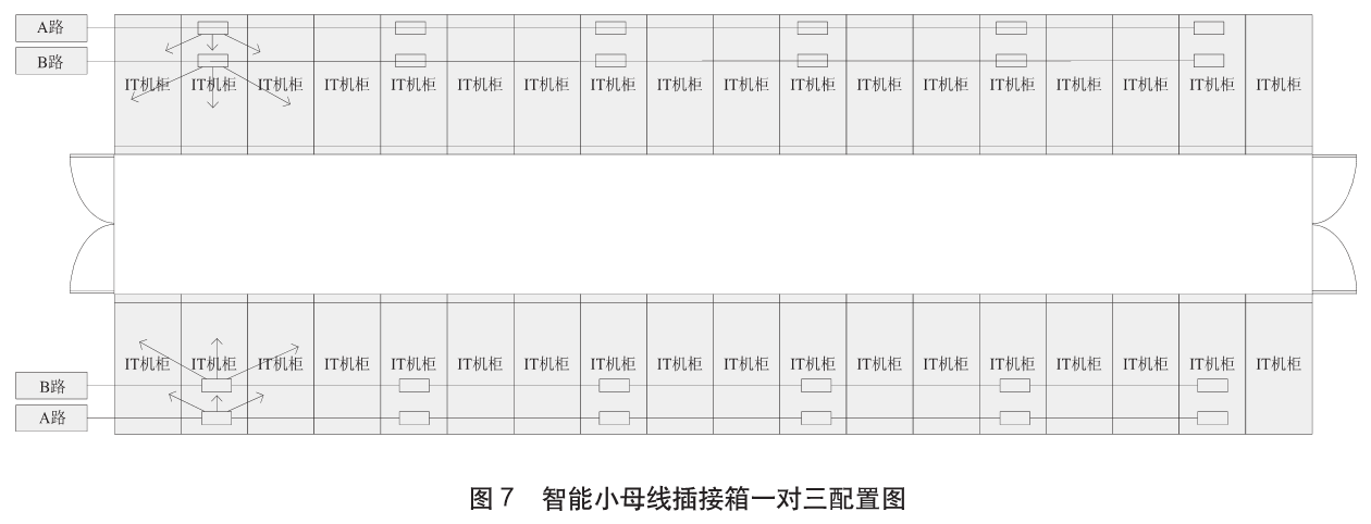 (5)對于分批次部署服務器的數據中心,或后期需要進行末端負荷調整的數據中心,強烈建議采用滑軌式的智能小母線配電方案;如果是一次性部署服務器或是方案固定的數據中心,可采用列頭柜加電纜的配電方案。