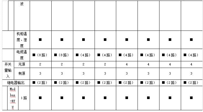 遙測:三相電壓、電流、有功功率、無功功率、視在功率、功率因數、有功電能、無功電能、電纜溫度,系統頻率、零序電流、零地電壓、漏電流、機柜溫度、機柜濕度、開關狀態、電壓/電流諧波含量、電流/功率;