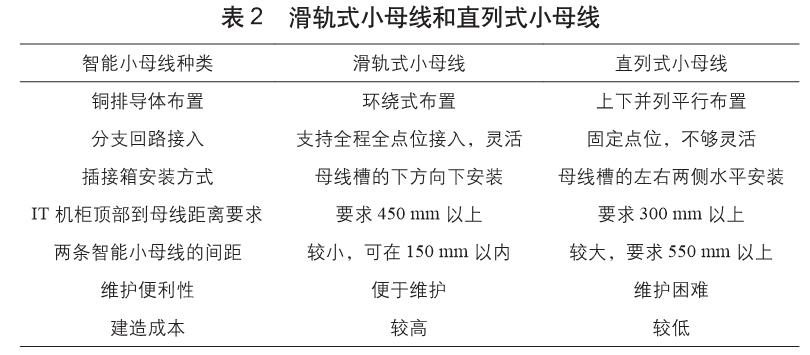 滑軌式小母線和直列式小母線的特點對比如表2所示。