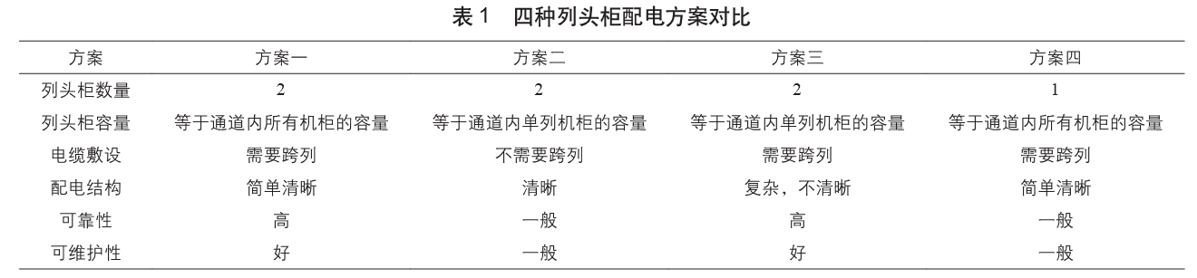 綜合列頭柜的上述4種列頭柜配電方案的優、缺點,建議采用配電方案一。