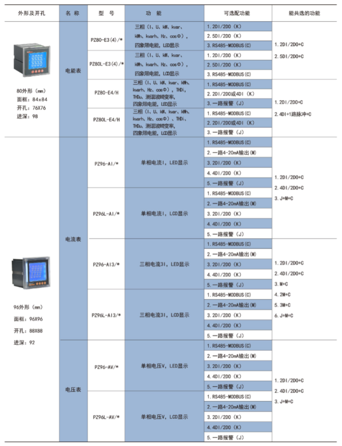 該系列儀表采用交流采樣技術,能分別測量電網中的電流、電壓、功率、功率因數和電能等參數。可帶RS485通訊接口、模擬量數據轉換、開關量輸入/輸出等功能,實現電力參數、電氣元件工作狀態的遠程傳輸,便于后臺監控系統集中檢測。