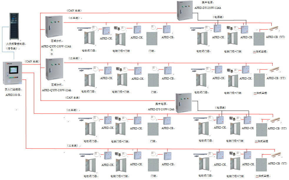 | 常開雙門 | AFRD-CK2 | 接收常開雙扇防火門的狀態信息并將其反饋至監控器,同時將監控器的指令傳遞給電動閉門器、電磁釋放器 |